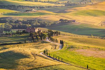 The cypresses, white roads, olive groves, among villages, rural churches and horizons with soft lines. A beautiful landscape painted by...