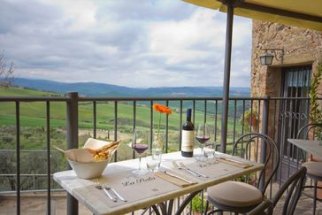 L'endroit est spectaculaire, niché contre la porte qui perce les murailles de Monticchiello, petit bourg perché au haut d'une colline, ...